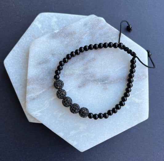 Adjustable Pavé Beads Stainless Steel Bracelet