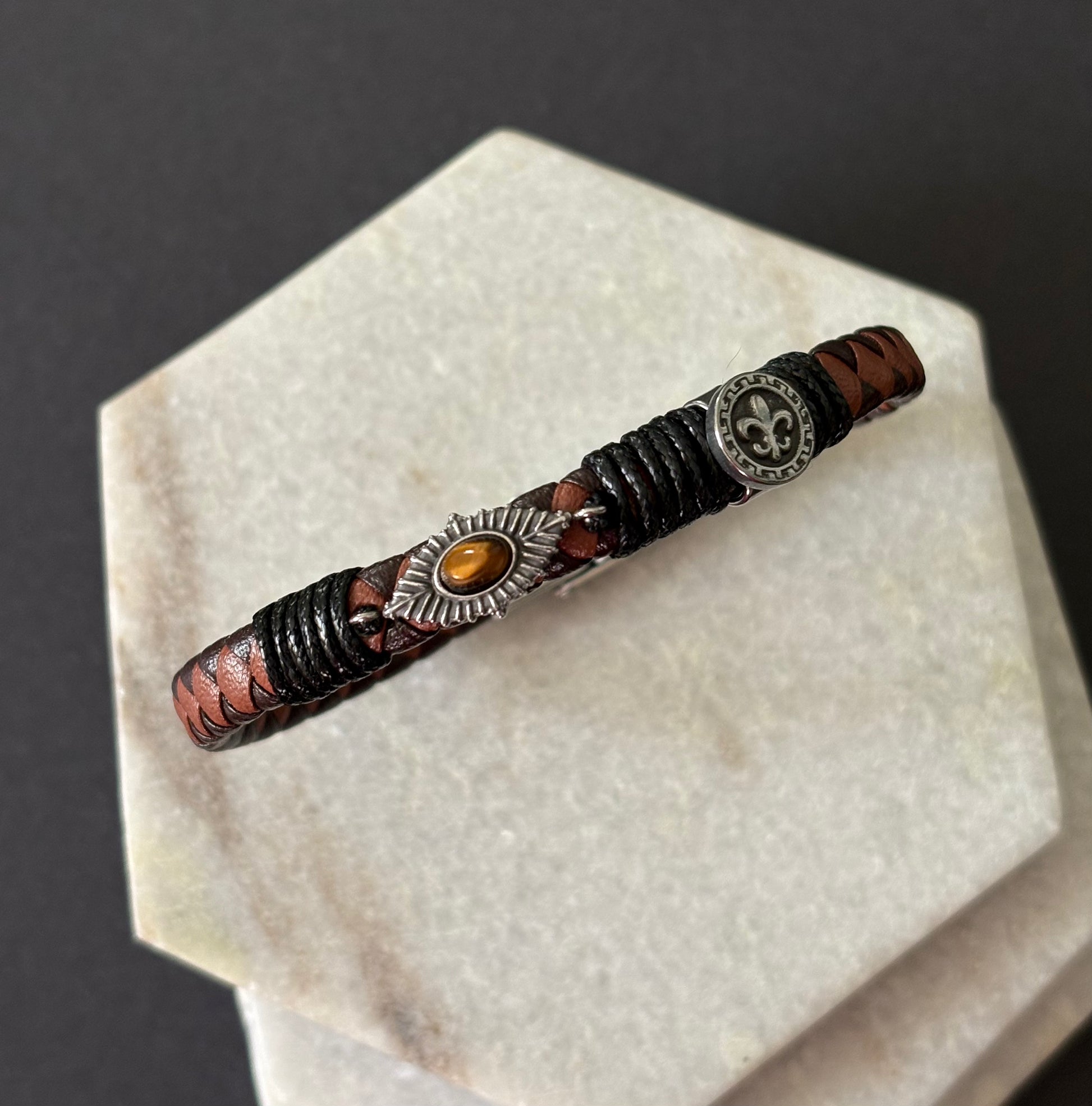Elevate your style with the Fleur de Lys Braided Bracelet, where timeless design meets modern craftsmanship. This piece features a detailed Fleur de Lys charm, symbolizing strength and nobility, paired with a durable braided band for a bold yet refined look.