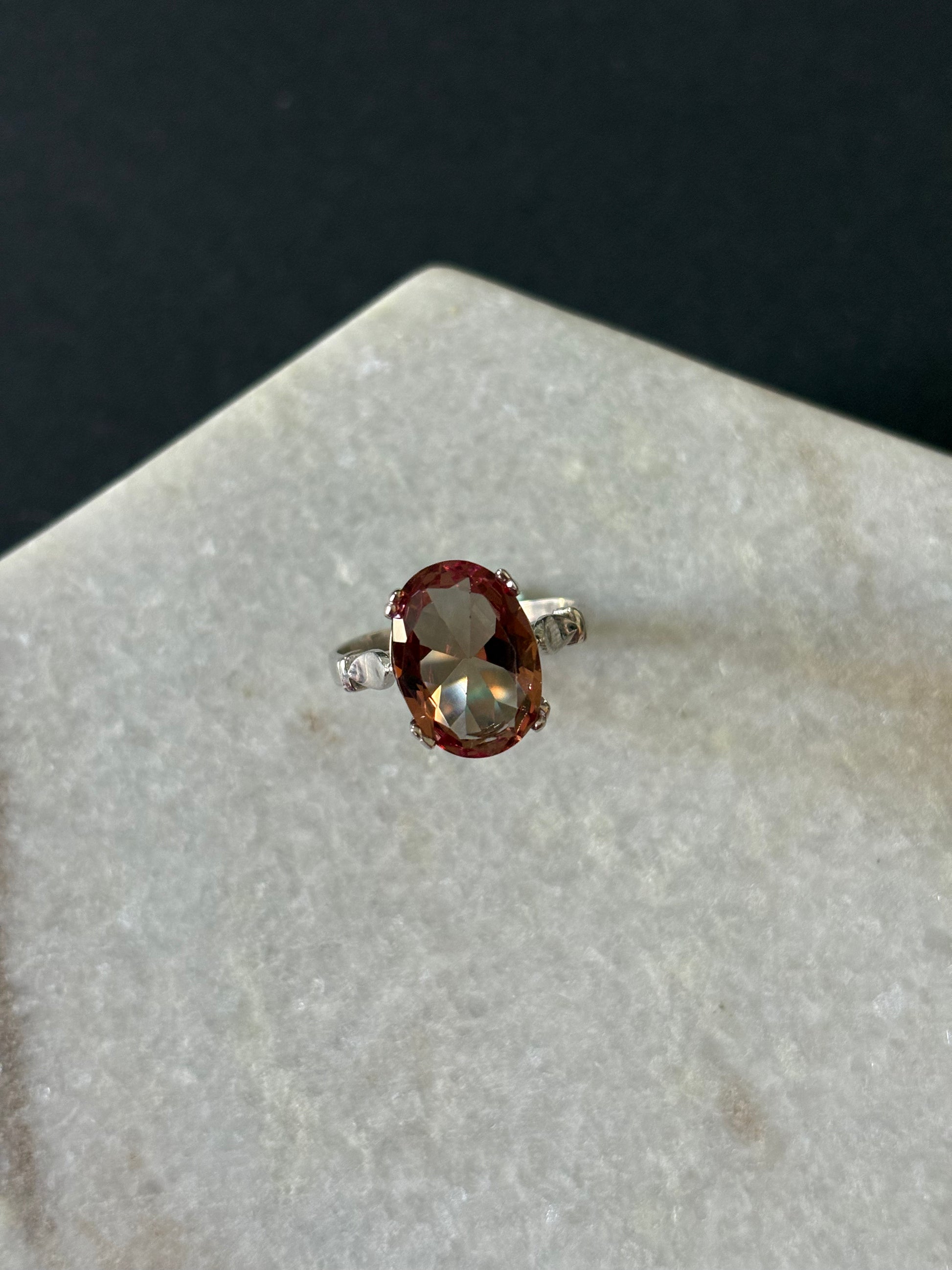 The Large Oval Solitaire Ring features a stunning oval-cut Zultanite that captivates with its natural color-changing beauty, shifting gracefully from soft greens to warm champagne and blush tones. Set in polished sterling silver, the elegant solitaire design highlights the brilliance and depth of the gemstone, creating a timeless and refined look. Perfect for adding a touch of sophistication to both everyday wear and special occasions.