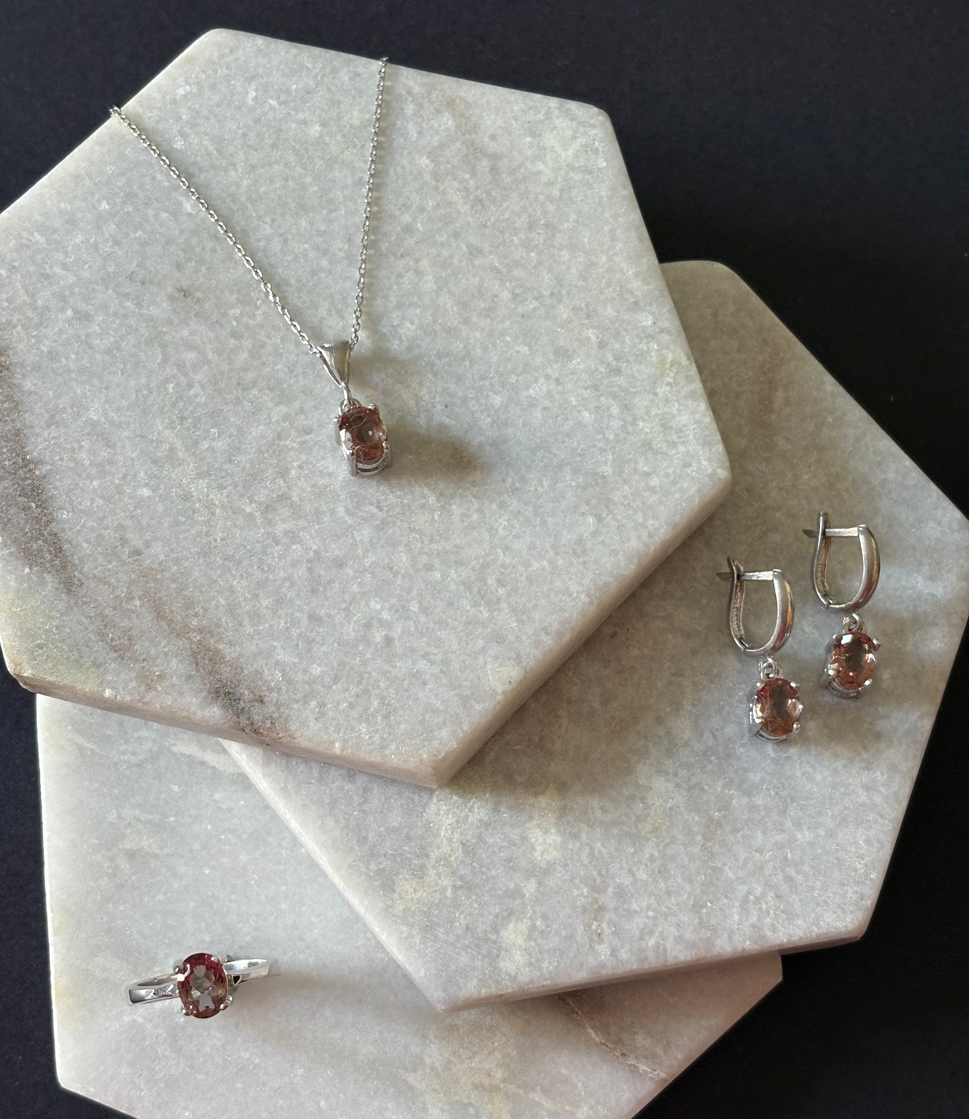 The Mini Oval Set features flawlessly cut mini oval Zultanite stones set in minimalist sterling silver, allowing the gem’s natural color-shifting brilliance to take center stage. No embellishments. No distractions. Just timeless sophistication.
